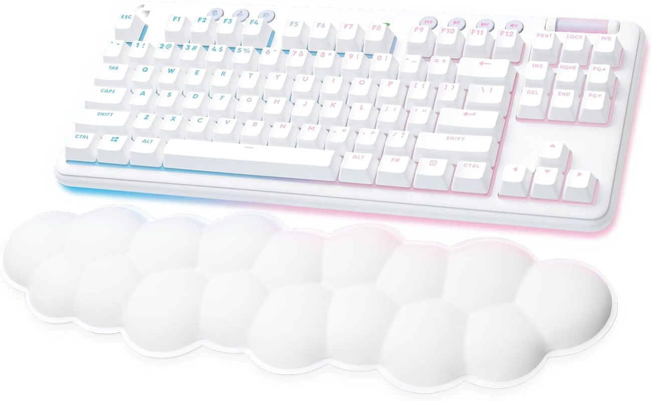 - Cloud-soft Comfort: Float away with G715??s dreamy white design and comfy, cloud-shaped palm rest; compact mechanical TKL keyboard layout and adjustable height give that good game feeling, all-day long