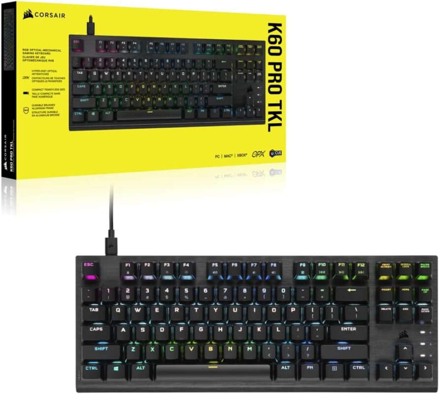 Corsair K70 CORE TKL RGB Tenkeyless Mechanical Wired Gaming Keyboard ?C Pre-Lubed MLX Red v2 Linear Switches, SOCD, ABS Double-Shot Keycaps, Sound Dampening, 1000Hz Polling, QWERTY NA ?C Black