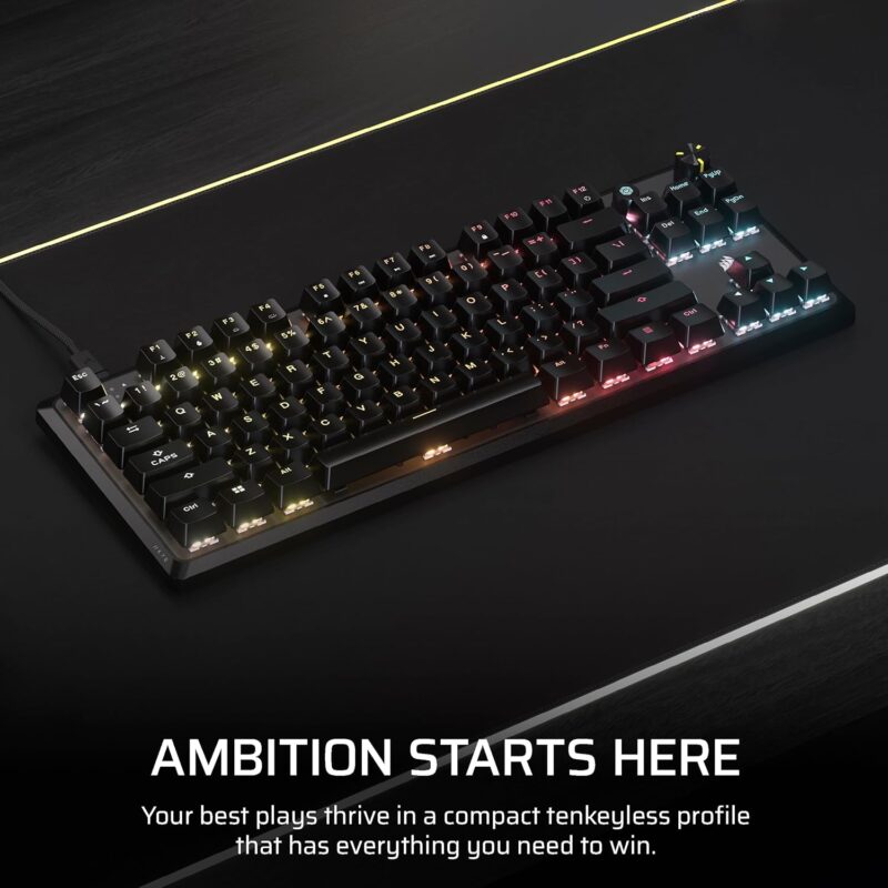 - Space-Saving Tenkeyless Layout: The compact tenkeyless footprint fits in tight gaming setups and leaves more room for sweeping mouse movements